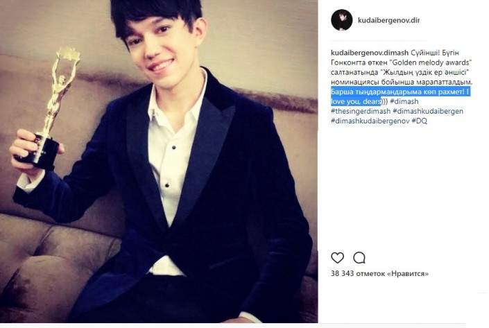 "Большое спасибо всем слушателям! Я люблю вас, dears", - написал Димаш Кудайберген.