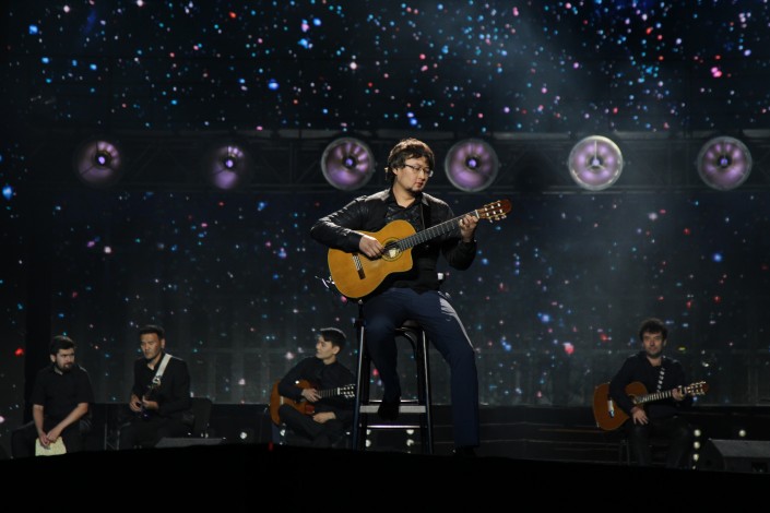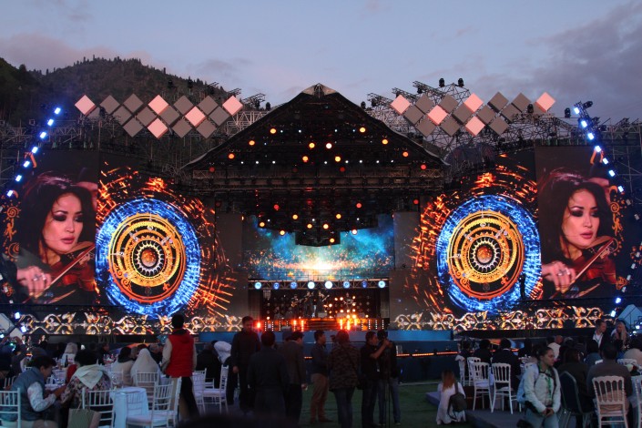 Как рассказала режиссер-постановщик концертной программы Назгуль Карабалина, специально для концерта сцену выполнили в форме звезды и сделали мобильной: передний конусный язычок принимает различные формы. Есть выдвигающийся подиум, раздвижные экраны, крутящаяся сцена и многое другое.