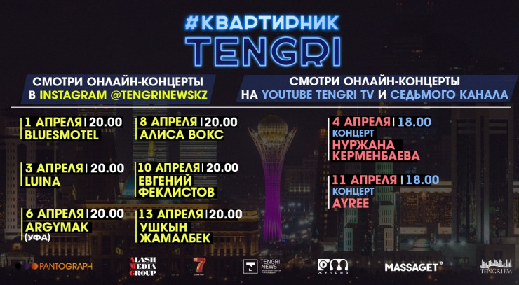 Напомним, что #КвартирникTengri акцентирует внимание на важности социального дистанцирования и соблюдения необходимых мер защиты в борьбе с COVID-19. Ранее в рамках проекта выступили группа Urker, лидер казахстанской рок-группы Motor-Roller Ильяс Аутов, певец Son Pascal, а также группа BluesMotel.