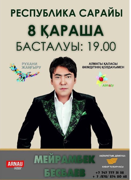 Певец исполнит как старые всеми любимые песни, так и новые композиции. Также в творческом вечере примут участие коллеги и друзья артиста: участники трио "МузАРТ", певицы Мадина Садвакасова и Молдир Ауелбекова, Саят Медеуов, Медеу Арынбаев и многие другие.