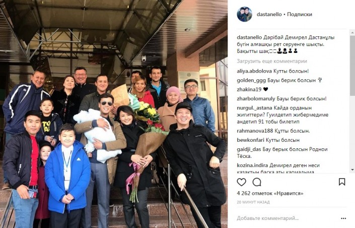 "Дарибай Демирель Дастанулы сегодня впервые вышел на прогулку. Счастливое время!" - подписал фото Оразбеков.