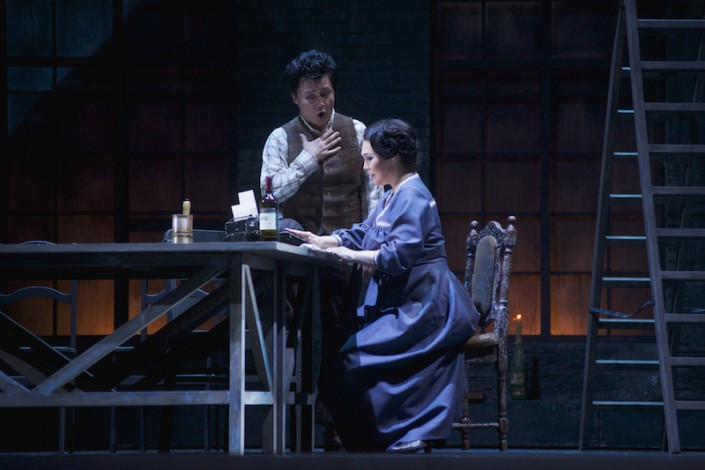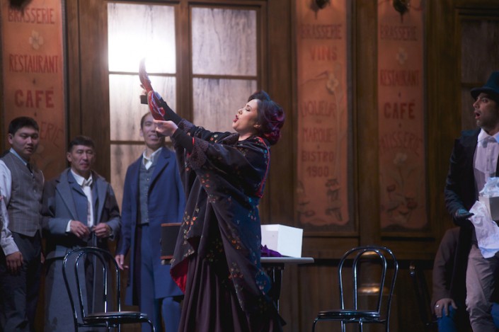 Как комические, так и драматические сцены в исполнении Салтанат Ахметовой, Альфии Каримовой (Мюзетта) и Сундета Байгожина, Талгата Мусабаева (Марсель) вызывали слезы на глазах у публики. Блистательный актерский талант ведущих солистов, отточенный как бриллиант, давал возможность слушателям наслаждаться каждым жестом, каждым взглядом артистов.