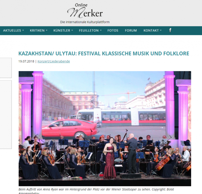 В то же время в Австрии авторитетный специализированный журнал NewMerker и международный культурный интернет-портал Online-Merker также опубликовали репортаж о фестивале в Улытау. В центре внимания корреспондентов изданий было выступление австрийской оперной певицы Анны Риан.