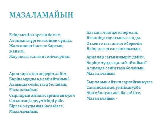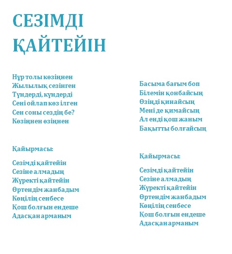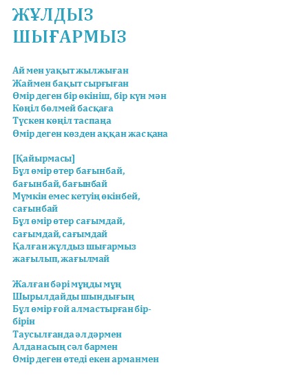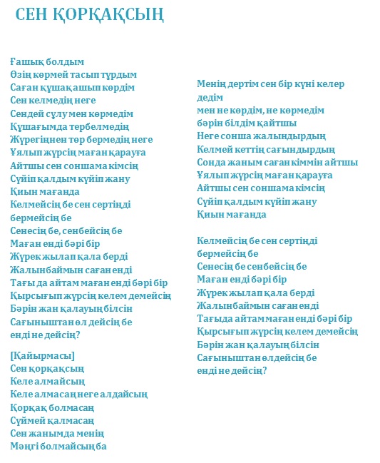 Ән сөздерін оқу үшін скриншотты шертіңіз: