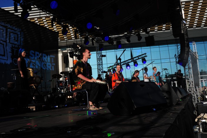 Во второй день крупнейшего в Центральной Азии международного фестиваля современной этнической музыки The Spirit of Tengri русские народные песни соединились с башкирским роком, передает корреспондент Tengrinews.kz. Композиции звучат в исполнении певицы Екатерины Ямщиковой из Башкортостана. Фестиваль проходит в формате open-air на площади имени Абая перед Дворцом Республики.