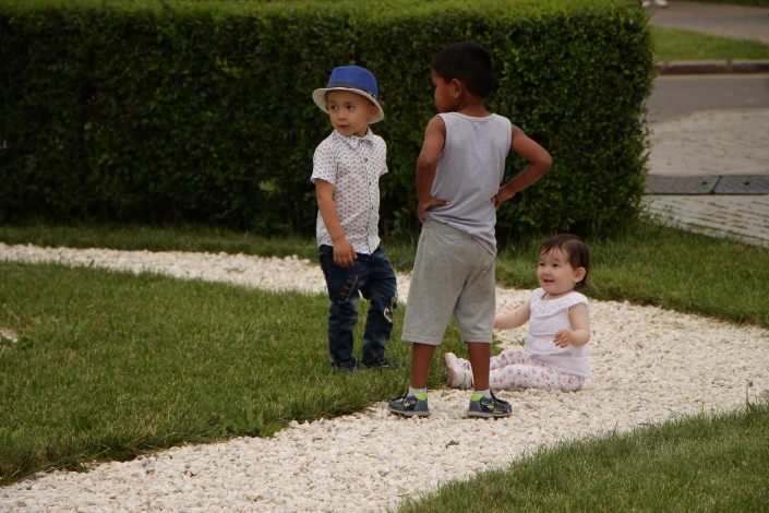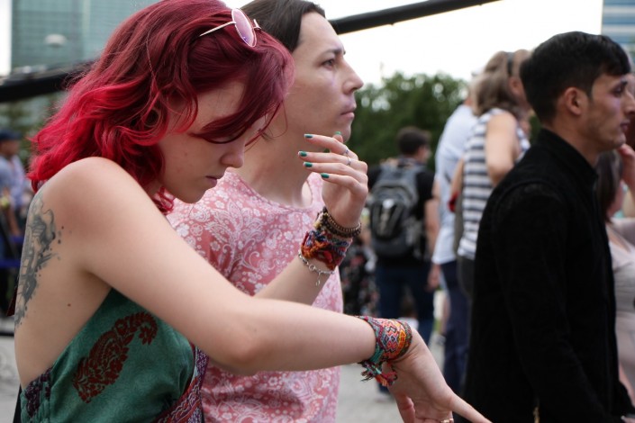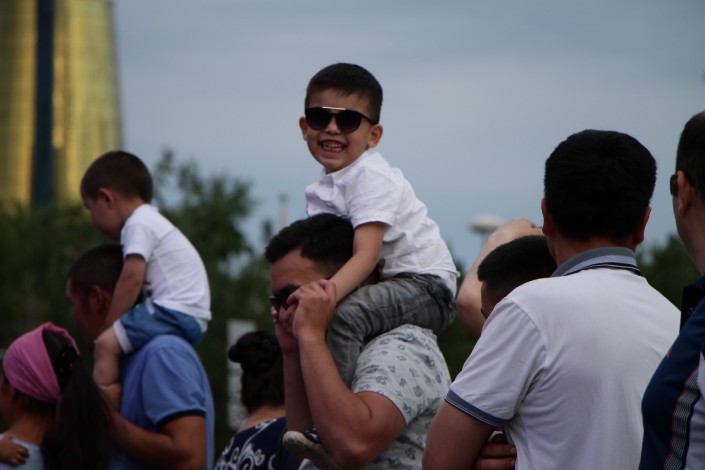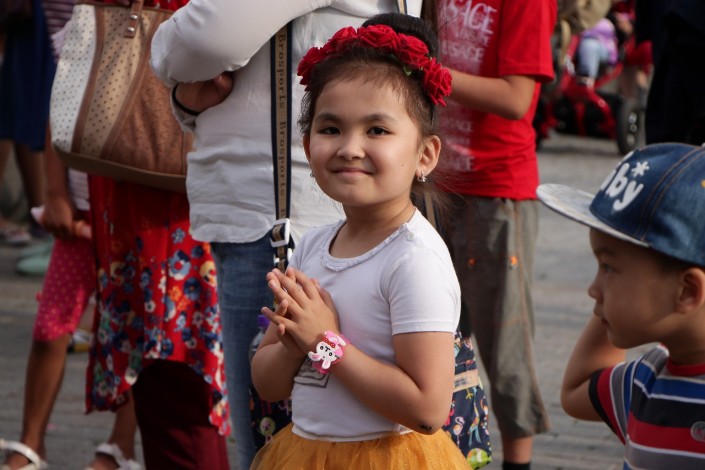 19.15 Фестиваль The Spirit of Astanа - поистине семейный праздник. Много пар и детей танцуют под этнические мотивы народов со всего мира. Под выступления артистов самые юные зрители зажигают на площадке и газоне у монумента "Байтерек".