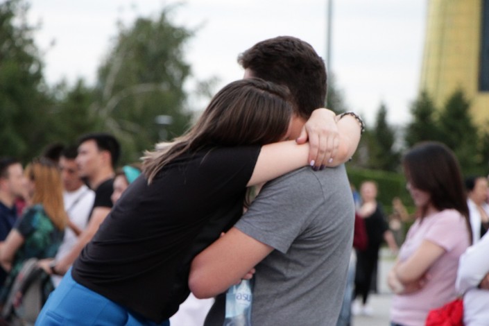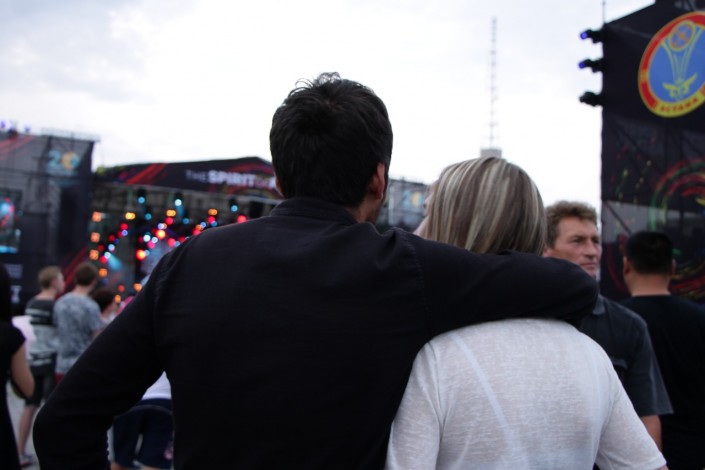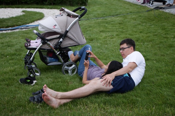 20.40 Среди зрителей много влюбленных пар. Молодые люди с удовольствием слушают артистов, валяются на траве, получают удовольствие от живой музыки на сцене The Spirit of Astana.