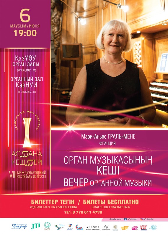 Любителям симфонической музыки 5 июня подарят концерт одного из самых известных пианистов современности Бехзода Абдураимова из Узбекистана и народной артистки Казахстана Айман Мусаходжаевой. 6 июня в столицу приедет органистка из Франции Мари-Аньес Граль-Мене. Завершится фестиваль 7 июня концертом "4 рояля & альт", который представит яркие премьеры и бессмертные хиты классики для альта, двух, трех, а затем и четырех роялей с оркестром.