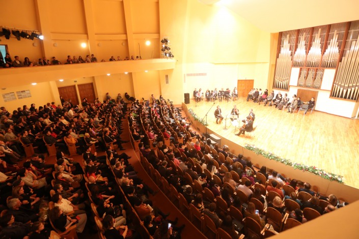 В Большом концертном зале Казахской национальной консерватории имени Курмангазы состоялся вечер камерной музыки с участием народной артистки РК Жании Аубакировой. В концерте также принял участие французский струнный квартет "Volta”. Вечер был приурочен к 25-летию казахстанско-французских дипломатических отношений.