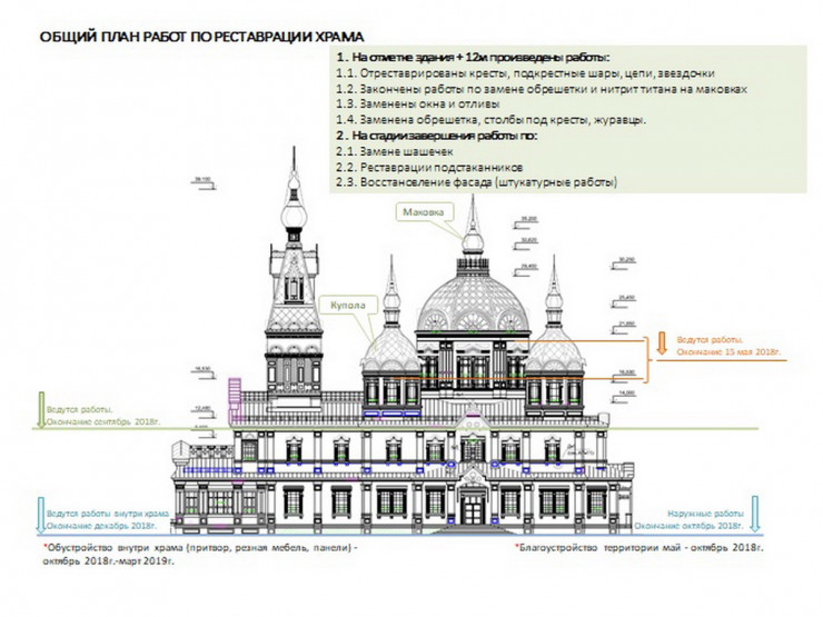 Реставрация фасадов закомар центрального купола