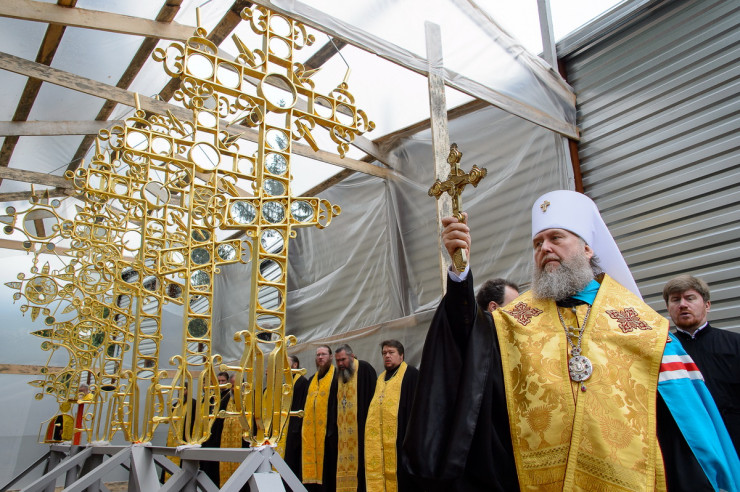 110 лет с момента установки эти кресты венчали собор. Их сняли уже в наше время, чтобы придать прежний вид, поскольку на высоте в 40-50 метров восстановить их оказалось сложно. Внизу, в специально оборудованном цехе, кресты очистили, вновь покрыли слоем золота и заменили обветшавшие зеркала.