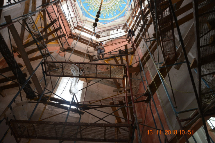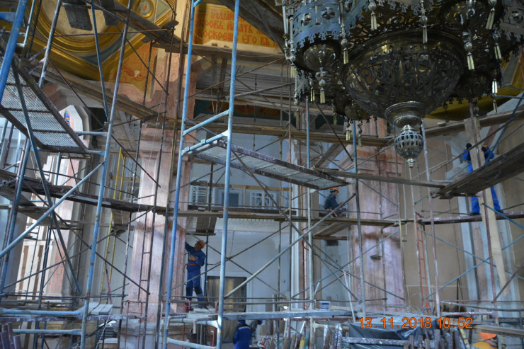 Реставрация колонн в центральной части собора