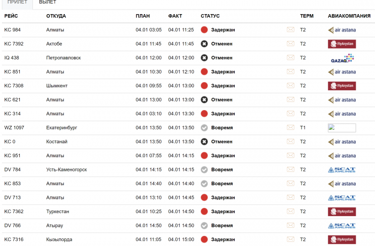 Число задержек авиарейсов выросло в аэропорту Астаны