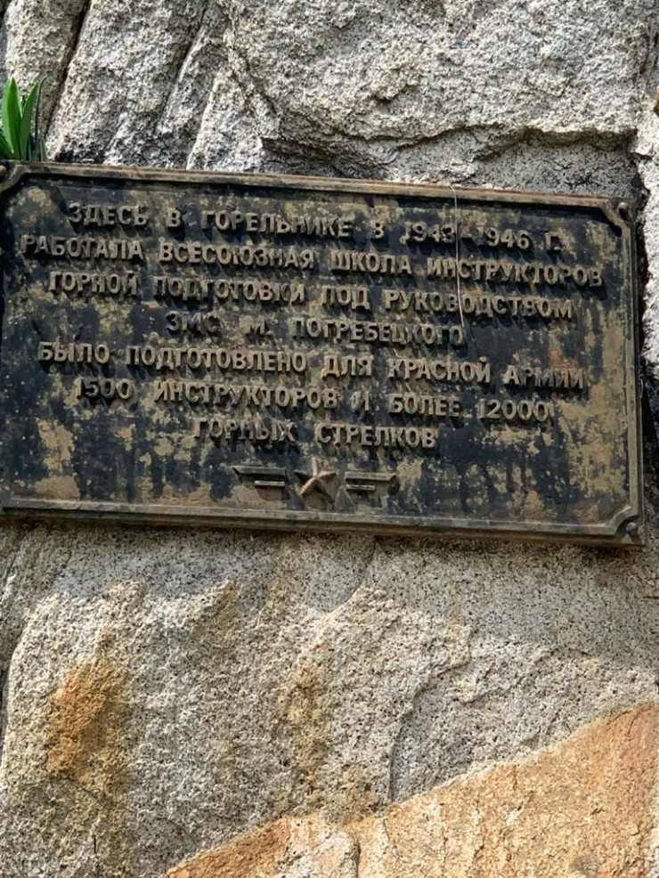 Также в Горельнике имеется табличка, посвященная работавшей в этих местах когда-то школе горных стрелков, которых готовили для войны.