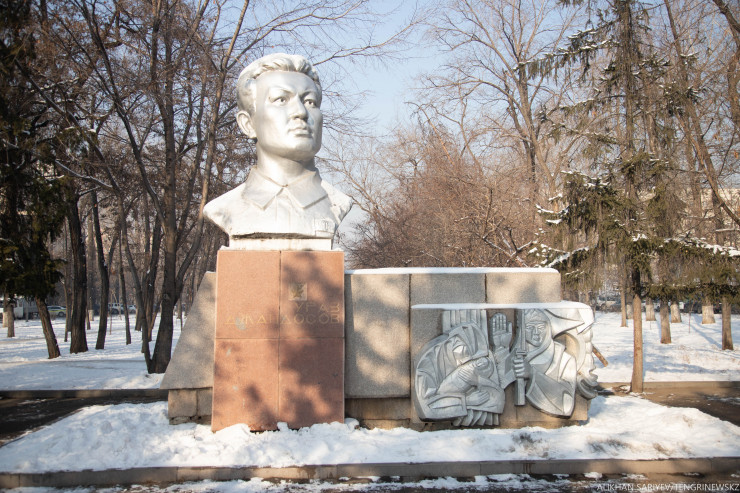 Тут же неподалеку можно найти бюст Абылай хана. Он находится на территории Казахского университета международных отношений и мировых языков, который назван в честь казахского хана. К слову, еще один памятник исторической личности находится на вокзале Алматы-2.
