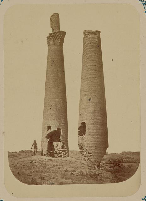 Сауранның тербеліп тұрған мұнаралары 19 ғасырға дейін сақталды. Тіпті фотосурет те бар. Мұнаралар суретте анық көрінеді, әлемнің осы кереметін кірпіштеп бөліп жатқан адам да бейнеленген.