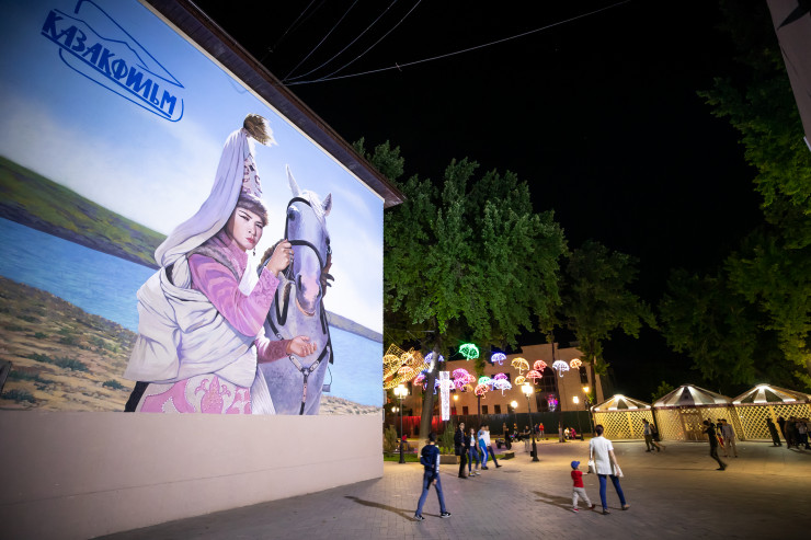 Мероприятие приурочили ко Дню Первого Президента страны. Длина уникальной прогулочной зоны - почти полкилометра, ширина - 35 метров. А на одной из стен домов изображен "живой поющий" мурал. На нем запечатлена сцена из фильма "Кыз Жибек" режиссера Султана-Ахмета Ходжикова.