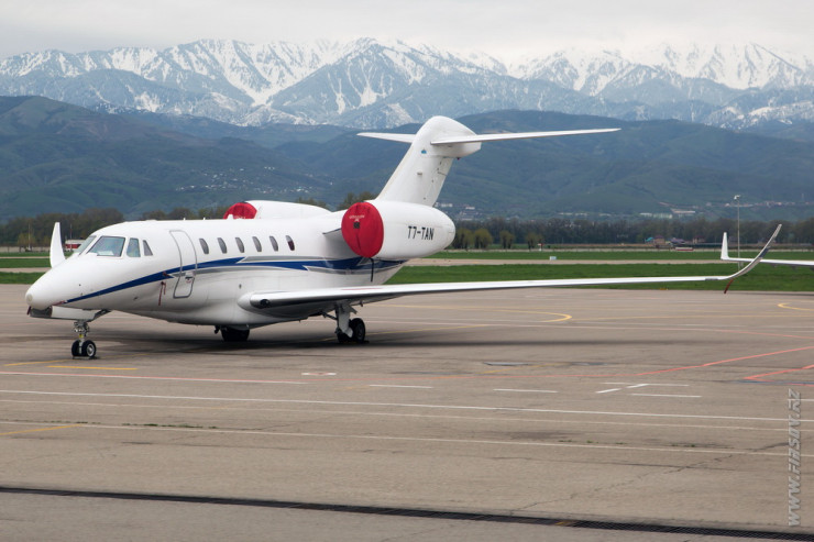 Бизнес-джет Cessna 750 Citation X в алматинском аэропорту, регистрация Сан-Марино. Фото Вячеслав Фирсов