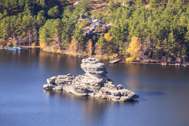 Самые популярные среди туристов вершины и горы парка - это Булектау, гора Синюха и величественная скала Окжетпес, с которых открывается потрясающий вид на озера Боровое и Большое Чебачье.