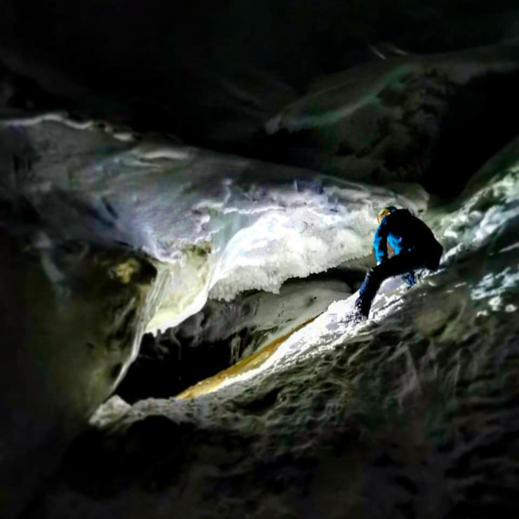 "Сначала, конечно, было немного тревожно. Ты не знаешь, что там внутри. Но потом, достав фонарик, я начал осматривать все вокруг. Это, конечно, космос. Какой-то "внутренний космос". Все переливается, под разными углами преломляются лучи, где-то есть вкрапления песка, где-то камней. А где-то лед кристально чистый, прозрачный и глубокий. И через него пробивается солнечный свет. В общем, удивительно", - делится впечатлениями он.