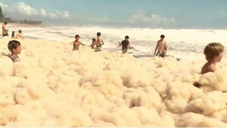 Побережье Австралии накрыл двухметровый слой океанической пены Кадр из видео