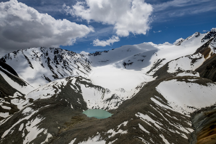 Вид с Южной вершины уже можно считать видом с Большого Алматинского пика, но все же наилучший пейзаж скрывается немного дальше. Спустившись на еле заметную тропку и двигаясь по правой стороне от пика к Северной вершине, вы и получите вид, который запомните на всю жизнь.