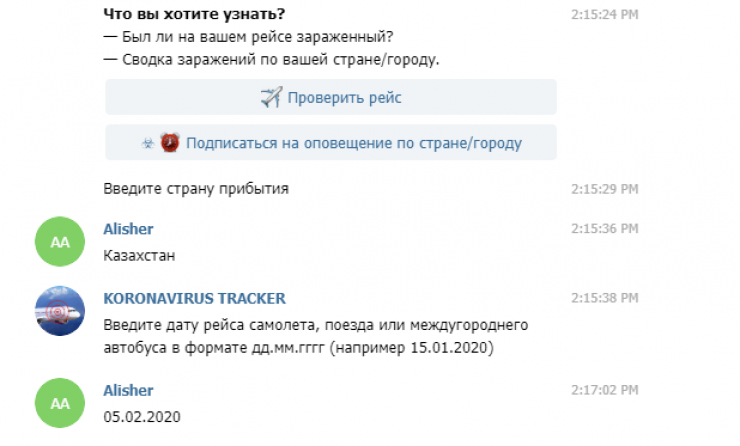 В мессенджере Telegram появился специальный бот, предназначенный для получения информации о наличии зараженных коронавирусом на авиарейсах, сообщает Tengritravel.kz.