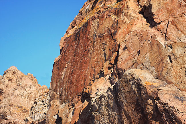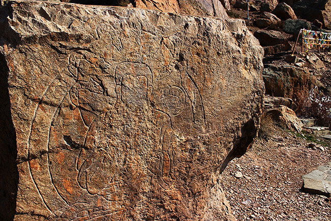 На берегу реки Или, в 170 километрах от Алматы, расположен Тамгалы-Тас, что в переводе означает "камни со знаками". Здесь около пяти веков назад на черной поверхности скал неизвестные мастера высекли множество рисунков, среди которых изображения Будды и Бурханов (Бодхисаттв), сопровождающиеся тибетскими надписями.