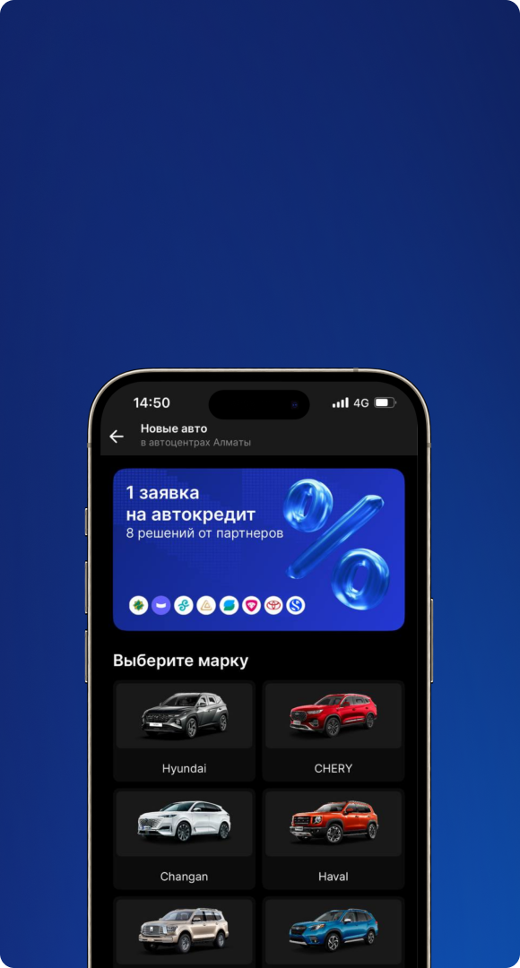 Mycar Finance, Банк ЦентрКредит, Eurasian Bank, Halyk Bank, Forte Bank, Sapa Digital Finance, Shinhan Finance, Toyota Financial Services