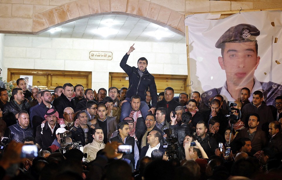 В столице Иордании Аммане тысячи людей также вышли на улицы, чтобы выразить свое возмущение казнью пилота.