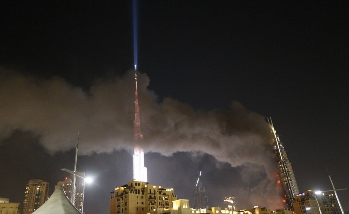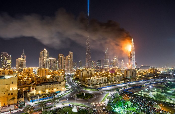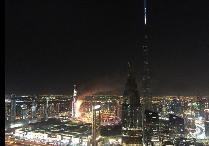 В Дубаи празднование Нового года вечером 31 декабря омрачилось сильным пожаром в пятизвездочном отеле-небоскребе Address Downtown, который расположен рядом с самым высоким зданием в мире - башней Бурдж Халифа. Фотографии и видео с места события очевидцы инцидента публикуют на своих страницах в социальных сетях - Twitter, Instagram, Facebook, сообщает Tengrinews.kz.