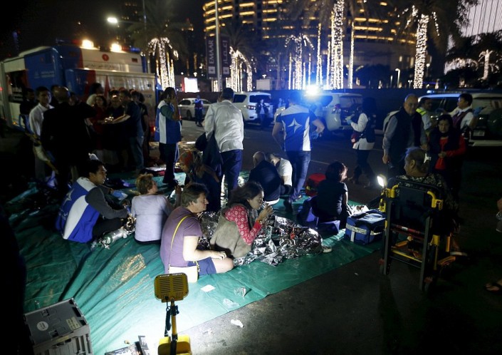 Огонь охватил несколько десятков этажей 300-метрового здания отеля. Что именно послужило причиной возгорания, сейчас выясняется. Отметим, что в данном районе по традиции запускают самый красочный салют в городе. Чтобы посмотреть шоу, здесь собираются тысячи людей.