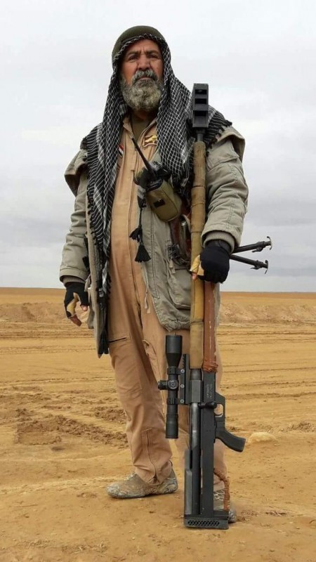 Пользователи социальных сетей в Ираке распространили видео, на котором известный снайпер на вопрос своего однополчанина о том, сколько членов ДАИШ ему удалось уничтожить, отвечает - 321. Самыми известными прозвищами погибшего ополченца, как сообщают члены "Аль-Хашд аш-Шааби", были Шейх Снайперов, Соколиный Глаз и Охотник за Игиловцами.