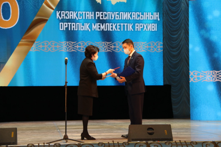 Министр наградила ряд архивистов нагрудным знаком "Архив саласының үздігі" ("Отличник архивного дела") и юбилейной медалью "Центральному государственному архиву Республики Казахстан – 100 лет".
