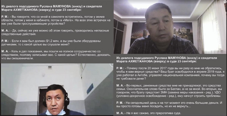 По второй версии, 1,2 миллиона долларов Мамунов вернул Ахметжановым еще в декабре 2016 года. Учитывая это, суд допросил в качестве свидетеля Михаила Женюлая, который работал у Мамунова, когда тот был бизнесменом. Он в суде сообщил, что передал деньги в Костанае еще в декабре 2016 года.