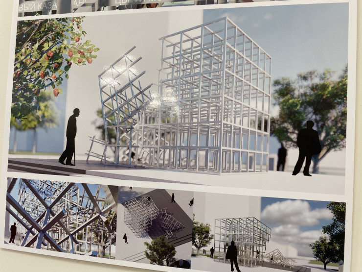 Один из предлагаемых проектов выполнен в виде металлического куба высотой и шириной 4 метра. Архитектор Сакен Нарынов объяснил, какой посыл несет его работа.