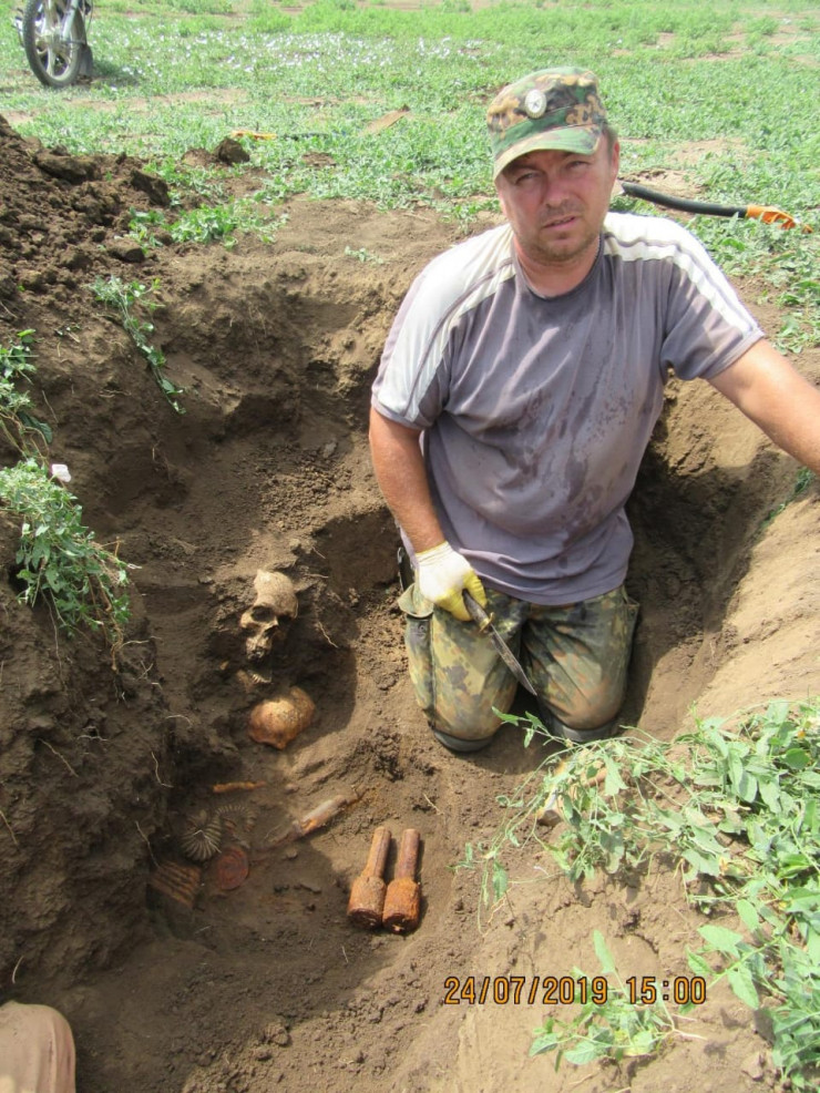 "Тогда мы говорим, что воин очень хотел домой. Так было и с Воронько. 24 июня 2019 года в 14 часов 24 минуты сработал сигнал металлоискателя. Мы начали копать. Первое, что нам попалось при раскопе, - солдатский ботинок. Далее пошла кость. От кости мы начали расширять яму, чтобы выяснить, фрагментирован ли боец. Но далее выяснилось, что в этой ячейке лежат два воина. Один найденный боец был очень молод – не старше двадцати лет", - вспоминает он.