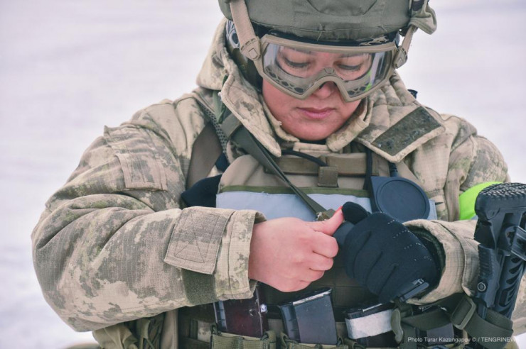 "Конечно, в отличие от мужчин, мы не проживаем на полигоне по несколько суток. Однако с утра и до поздней ночи нам приходилось здесь оставаться", - рассказывает Гулим. Она подтвердила, что в первую очередь служба в подразделении отличается усиленными тренировками.