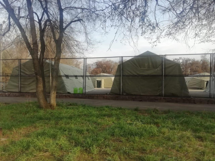 В целях своевременного реагирования на возможные изменения эпидемиологической обстановки в Пограничной академии КНБ, связанного с ежедневным выделением личного состава для участия в патрульных мероприятиях в Алматы и возможной временной изоляцией контактных с больными КВИ военнослужащих переменного состава, на основной базе академии развернут полевой карантинный стационар.