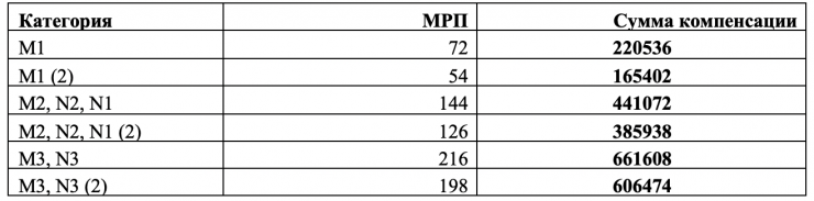 В 2022 году в связи с изменением размера месячного расчетного показателя выплаты денежной компенсации за сдачу ВЭТС варьируются в диапазоне от 165 402 тенге до 606 474 тенге в зависимости от категории и комплектации транспортного средства.