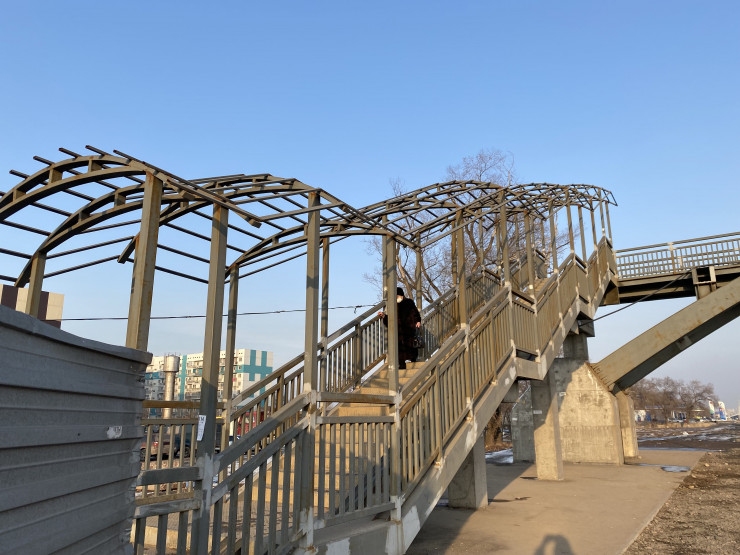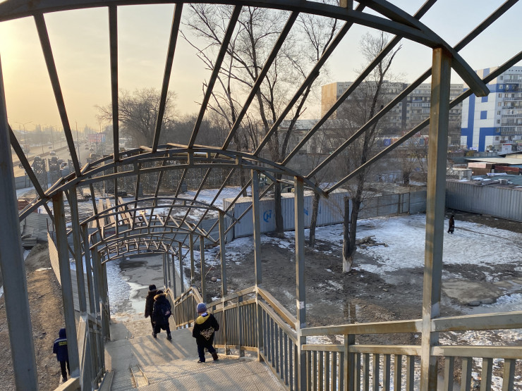 Также до конца не оборудовали надземный пешеходный переход около ЖК "Асыл Арман". Там нет крыши и подъемников для инвалидов.
