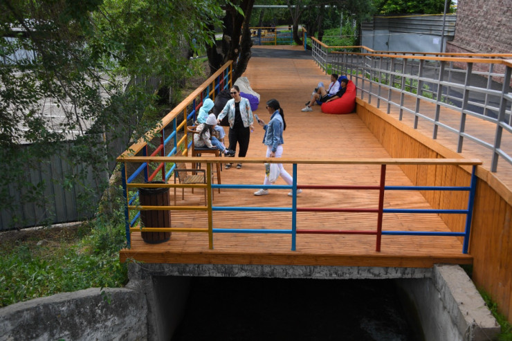 Во-вторых, по его словам, привели в порядок русло, очистив его от ила и песка. Укрепили и восстановили габионные конструкции. Реконструировали мост на улице Макатаева, обновили гидротехнические сооружения. Это позволило увеличить пропускную способность реки Малая Алматинка с 0,5 до 2,5 кубометра в минуту. Где было возможно, расширили дорожку с двух до трех с половиной метров, заменив асфальтовое покрытие.