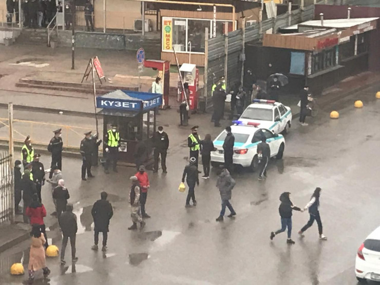 Полицейские не выпускают жителей ЖК "Асыл Арман" под Алматы Фото:Айнаш Ондирис