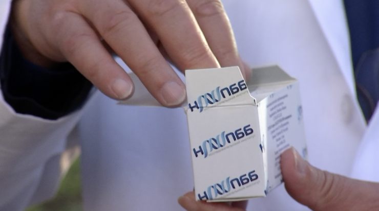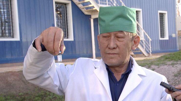 "В одной коробке 10 флаконов. В одном флаконе содержится одна доза (1 инъекция). Это 0,5 миллилитра субстанции, то есть 10 капель", - рассказал заведующий лабораторией особых инфекций НИИ проблем биологической безопасности Лесбек Кутумбетов.