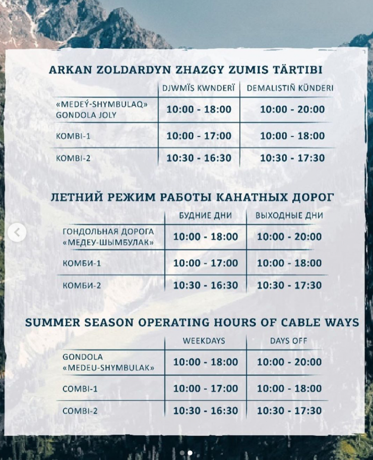 На странице "Шымбулака" в Instagram уже опубликовано летнее расписание.