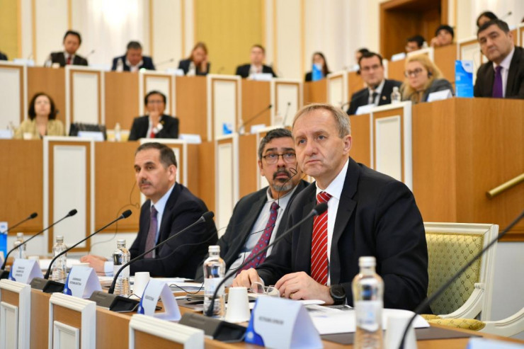 В своем выступлении Эльвира Азимова отметила, что в текущем году правозащитная деятельность в государствах ООН проводится под лозунгом "Достоинство, свобода и справедливость для всех", что соответствует задачам созданного в новом формате органа конституционного контроля.