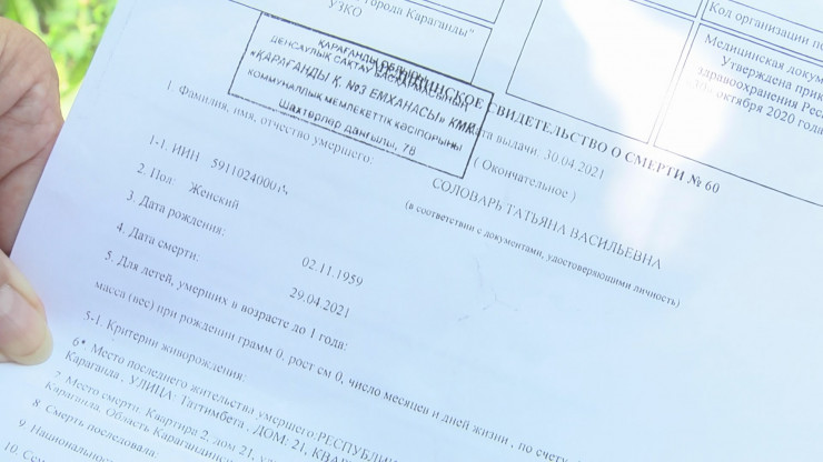 Свидетельство о смерти по ошибке выписали врачи Татьяне Соловарь вместо ее матери в Караганде. Теперь женщина значится мертвой в электронных базах всех государственных структур. Медики не могут исправить ошибку. Подробнее - в материале корреспондента Tengrinews.kz.