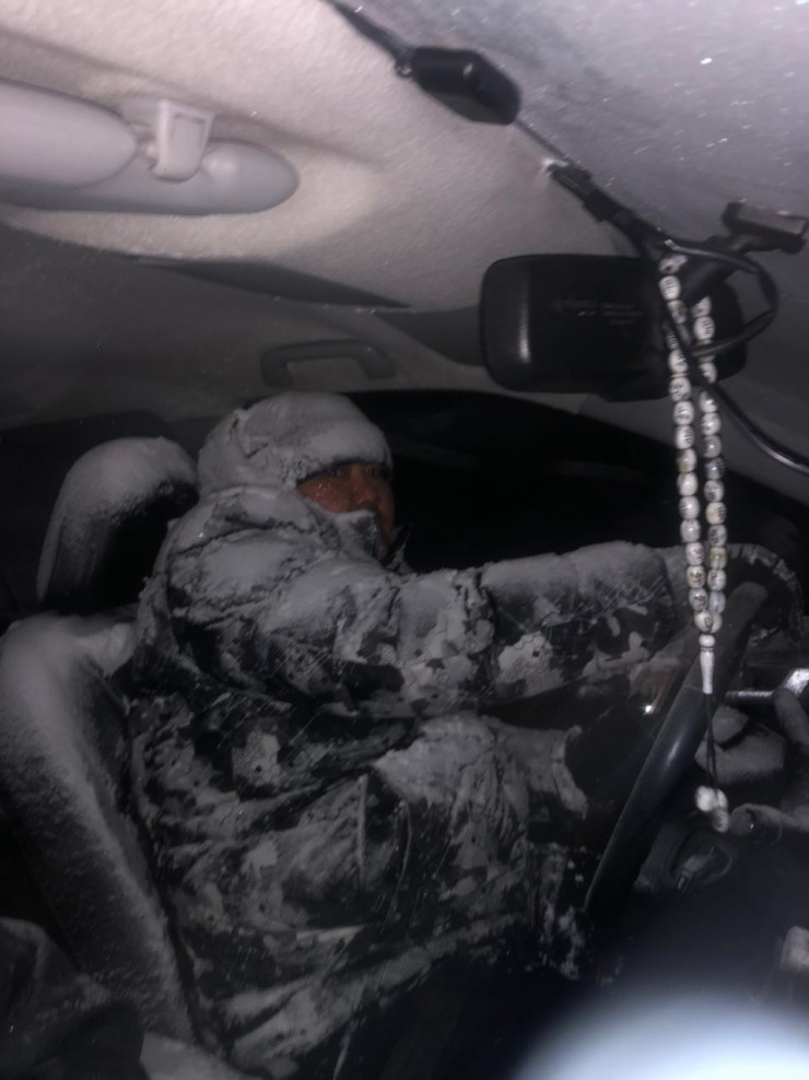 "12 километров, которые мы ехали до сторожки, где обогревались, преодолели за восемь часов. Со мной было семь сотрудников полиции. Я весь заснеженный, потому что переднее окно с водительской стороны было опущено и снег задувал. Рядом бежал сотрудник полиции, держался за боковое окно. Видимости никакой не было, он ногами чувствовал асфальт и регулировал, когда съезжали на снег", - рассказал Булат Иманов.