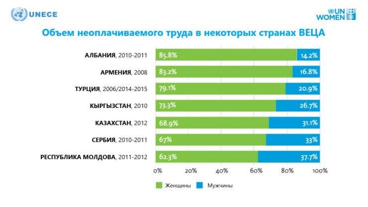 Но помимо основной занятости, женщины по всему миру выполняют в ТРИ РАЗА БОЛЬШЕ работы по дому и уходу (76 процентов) за членами семьи, чем мужчины. То есть по возвращении домой с работы женщина заступает во вторую рабочую смену без выходных. Все то, что в патриархальном обществе принято называть "женской работой", а именно приготовление пищи, уборка, стирка, уход за пожилыми, больными членами семьи и детьми, а также заготовка дров, воды (все еще актуальные в сельской местности), на самом деле является неоплачиваемым трудом по уходу.