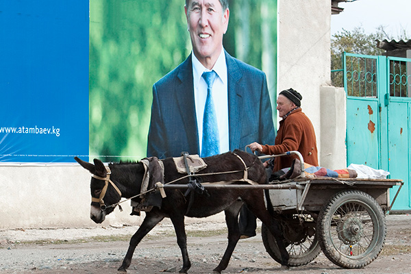 - Фотография ишака, запряженного в допотопную телегу на фоне плаката с президентом Кыргызстана Атамбаевым, очевидно призвана проиллюстрировать читателям портала уровень развития в "Братской Киргизии"? Получилось очень двусмысленно.